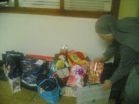 La preside dell’istituto Mater di Sanrem o sta ordinando alcuni giocattoli nuovi acquistati dagli studenti della scuo la primaria e secondaria per i bambini della Moldavia